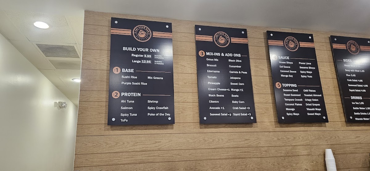Introducing the menu at AHI POKE BAR (Dothan), where freshness meets flavor in a vibrant dining experience. Nestled at 4650 W Main St Suit 604, Dothan, AL, this poke bar is renowned for its clean environment and friendly, knowledgeable staff. Offering an array of customizable poke bowls, diners can indulge in options like the Super Bowl or craft their own masterpiece, featuring ingredients such as sushi rice, shrimp, and fresh veggies.